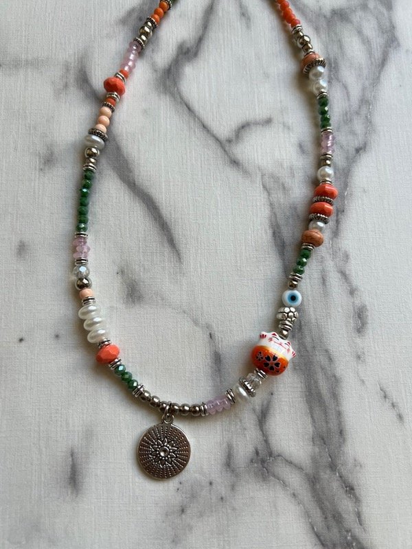 Un pack súper completo con 6 collares distintos, llenos de color, brillo y detalles únicos: perlados, cristales, metal, ojitos, flores, piezas naturales y más.